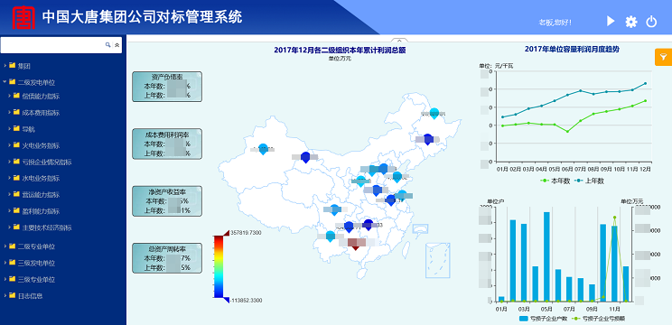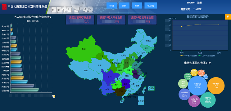 對標管理系統財務部分主要進行數據分析,為中國大唐集團公司以及板塊企業(yè)進行多維度分析決策和運營決策提供及時有效的信息。對標管理系統物資部分主要實現電子倉庫,實現物料全集團共享查詢、支持備品備件協作網管理、聯儲代儲管理;整合各基層企業(yè)采購數據并且集成大唐電子商城平臺相關采購數據,進行數據分析為采購決策提供支持。