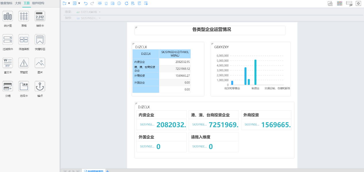 通過(guò)拖拽維度和指標(biāo)即可自主完成圖表分析。自助分析報(bào)表有:多維分析、敏捷看板和看板集。