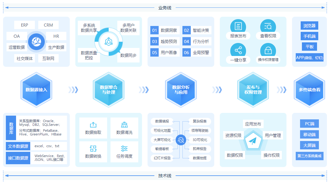 為大數(shù)據(jù)時代而生,具備數(shù)據(jù)融合,復(fù)雜報表、敏捷分析、大屏可視化、數(shù)據(jù)挖掘、移動分析等超全功能,實現(xiàn)超大數(shù)據(jù)量的秒級響應(yīng),成為了億信ABI獲得政府、銀行等重大客戶應(yīng)用的重要原因。億信ABI不僅為廣大企業(yè)規(guī)避了產(chǎn)品國產(chǎn)化替代的風(fēng)險,而且為企業(yè)提供了數(shù)據(jù)驅(qū)動業(yè)務(wù)的有效路徑,幫助企業(yè)實現(xiàn)數(shù)據(jù)規(guī)律的可視、可控、可優(yōu),為企業(yè)帶來實實在在的業(yè)務(wù)價值。