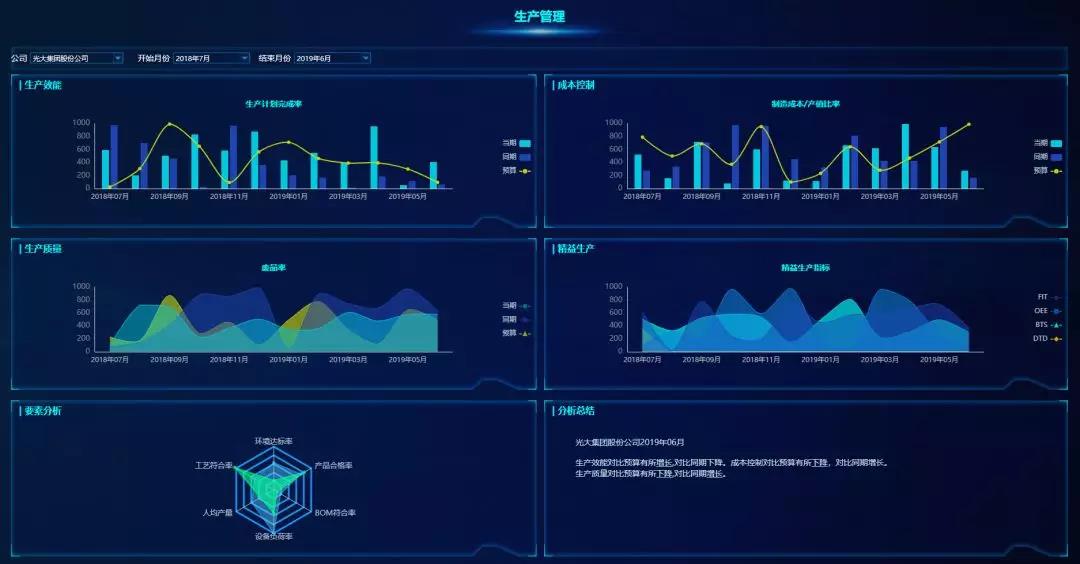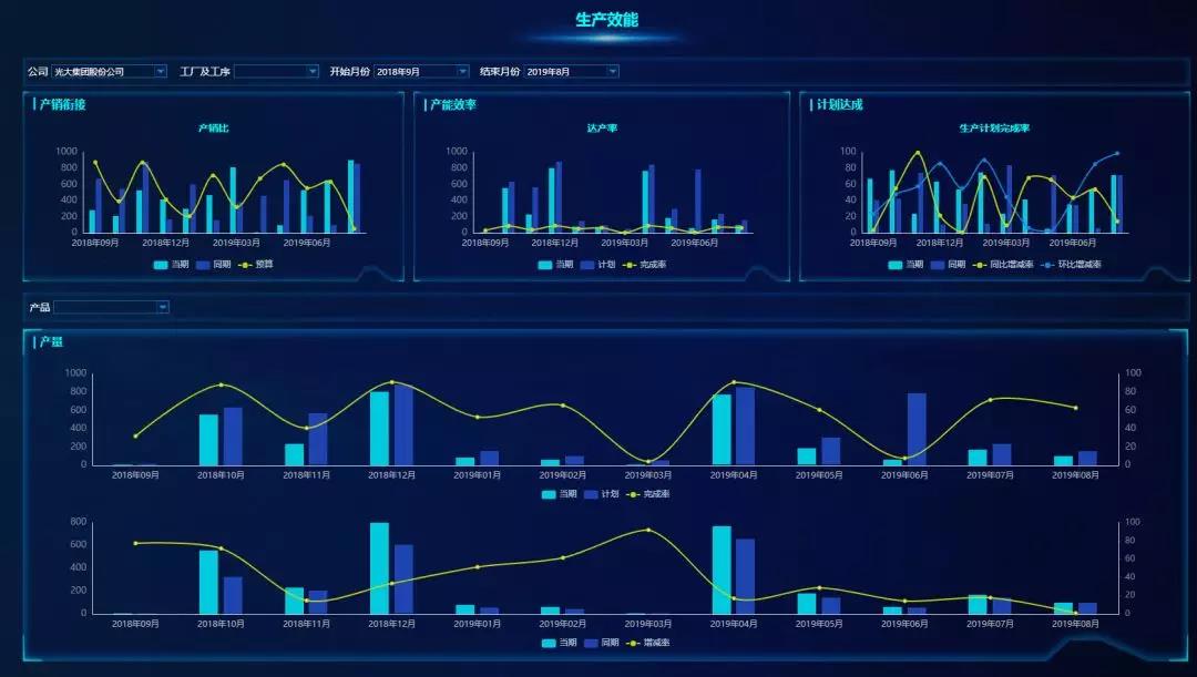 下圖是用億信ABI搭建的生產數據分析平臺,都是用于實際生產的可視化報表。